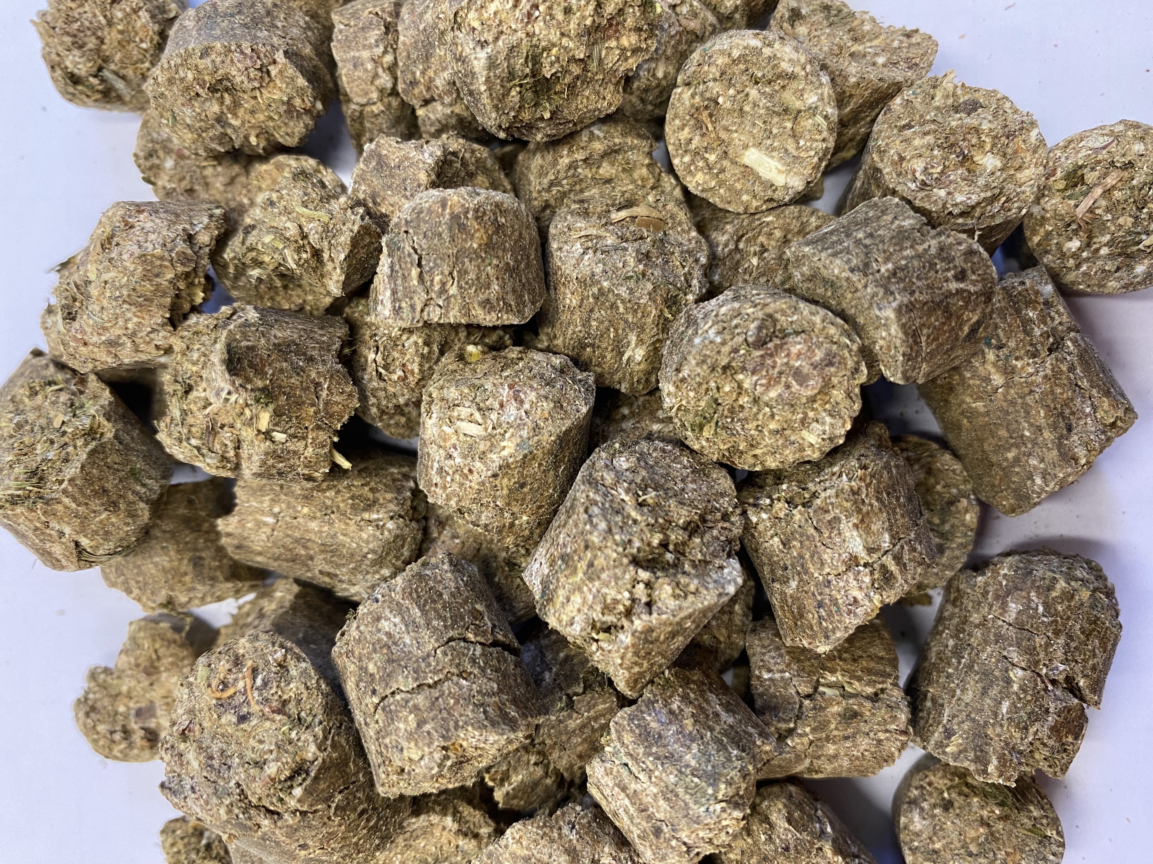 Bitte beachten Sie, dass es sich bei dieser Variante um B-Ware handelt. Die Pelletgröße und Pelletstabilität weichen etwas von den regulären Vierjahreszeiten-Cobs ab, sind jedoch in ihrer Zusammensetzung und den Inhaltsstoffen identisch mit den Standardprodukten.