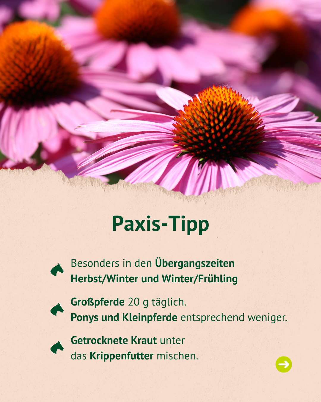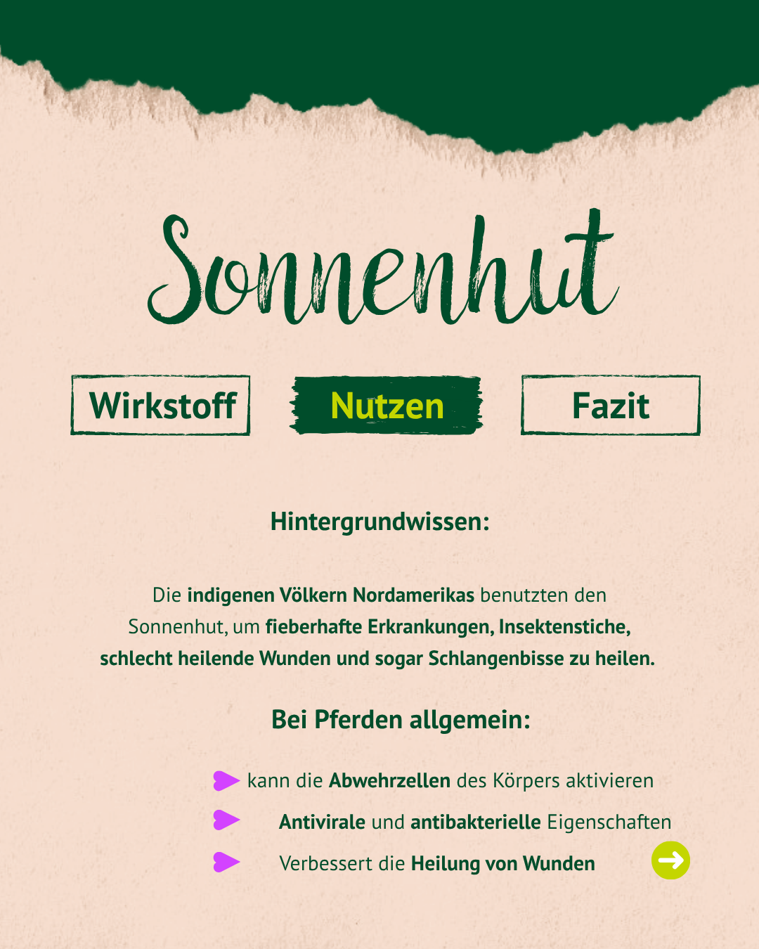 Unterstütze die naturnahe Fütterung Deines Pferdes mit Sonnenhut – ganz ohne synthetische Zusätze.