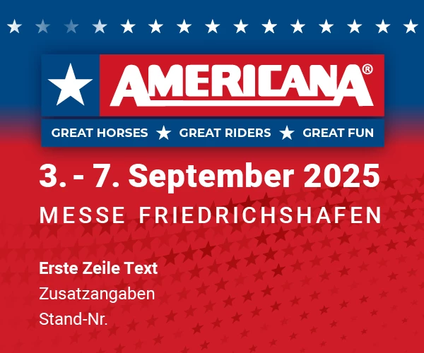 Besuchen Sie uns auf der Americana, wo unser engagiertes Team von Futterexperten Sie persönlich begrüßt. Erleben Sie eine vielfältige Auswahl an hochwertigem Pferdefutter und entdecken Sie exklusive Messeangebote, die Ihren Liebling verwöhnen.